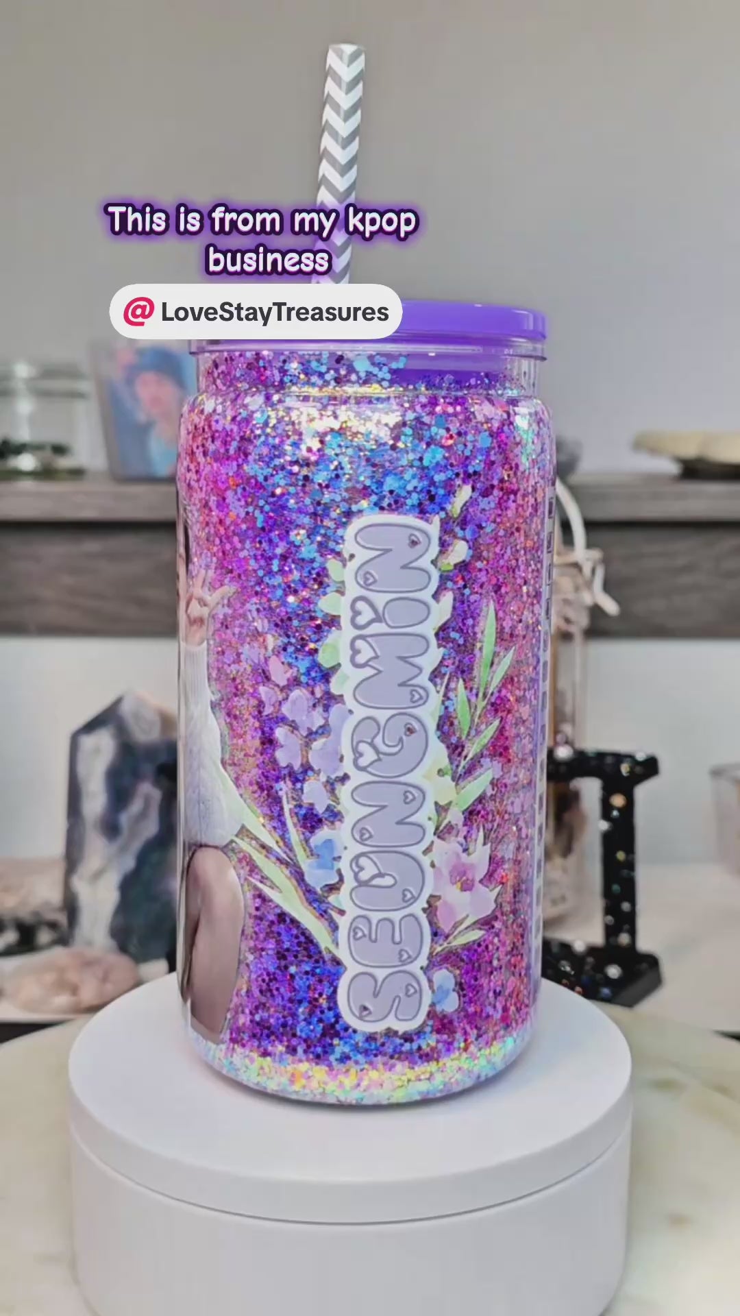 LoveStayTreasures design! Add to cart with the cup you want and I’ll make it live on tt! If you’d rather me just make it off screen, please add in notes colors of glitter you’re wanting and make sure you add to cart any accessories.