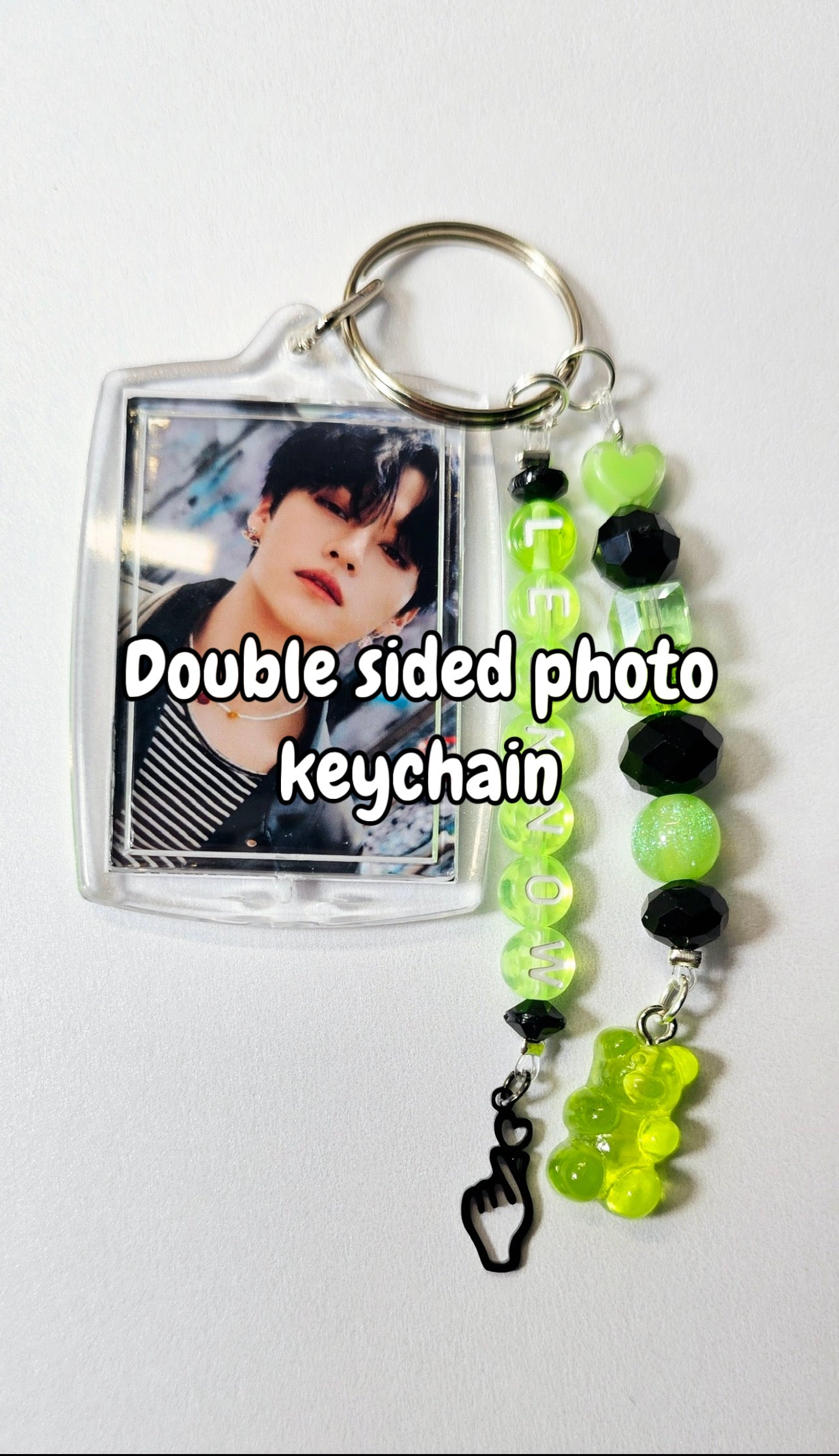 If you are choosing to upgrade to the two sided photo keychain and would like certain photos used, please send them after purchase and I will put those in the keychain!